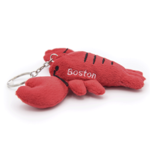 Plush stuffed lobster Keychain featuring Boston lettering on the side.