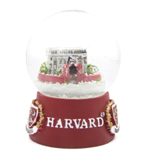 Snow globe featuring the Harvard gate and Harvard lettering on the base.
